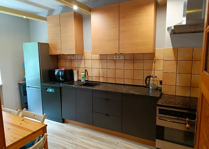 Obiekt noclegowy posiada pełnowymiarową kuchnię wraz z piekarnikiem i zmywarką do naczyń dla gości. Apartament z ogródkiem i miejscem do grillowania położony jest tuż za rogiem od najbliższego przystanku autobusowego - Biala 01.